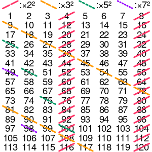 Square-free integers up to 120 remain after eliminating multiples of squares of primes up to √120