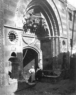 يقع هذا الخان في سوق البزورية الشهير حيث باعة العطارة والسكاكر وعبق التاريخ، إلى جانب حمام تاريخي أنشئ في عصر نور الدين بن زنكي، وتبلغ مساحة هذا الخان 2500م2، ويمتاز بواجهة عريضة في وسطها بوابة ضخمة مزخرفة، يعلوها ساكف مزخرف بقوسين بارزين متشابكين وفوقهما تجويف من المقرنصات يحيطه قوس مركب من أحجار متشابكة مسننة بلونين أبيض وأسود متناوبين، وفوقه نافذتان وعلى جانبي القوس من الأعلى نوافذ مستطيلة، ومن الأسفل فتحتان مزودتان بفسقيتين. وفي واجهة البناء الجنوبية الغربية 31 مخزناً. وبعد دهليز عريض يستوعب غرفتين للحراسة ومصعدي الدرجتين، نصل إلى باحة ذات فتحة سماوية دائرية توحي أنها كانت مغلقة بقبة، وفي وسط الباحة بركة مثمنة. وجدران الباحة التي تشكل واجهات الغرف مبنية بالحجر الأسود والأبيض بمداميك متناوبة. ويحيط الفتحة السماوية ثمانية قباب تغطي الباحة عدا مركزها بمساحة 729م2 ولقد أعيد ترميم بعض هذه القباب مؤخراً. وهي ترتفع عشرين مترا