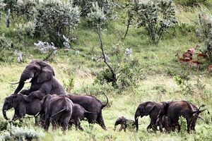 | أنثى فيل الأحراش الأفريقي في منتزه ميكومي الوطني، تنزانيا. | |