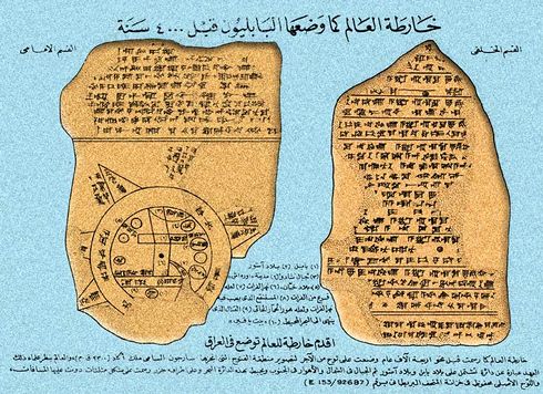 أقدم خريطة للعالم وتسمى Imago Mundi من بابل من 700 - 500 ق.م.. غالباً من سيپـّار، بجنوب العراق.[1] الخريطة كما رممها إكارد أنگر تبين بابل على نهر الفرات, محاطة بأرض دائرية توضح آشور, أرمنيا والعديد من المدن, المحاطة بما تسميه "النهر المالح" (المحيط Oceanus), مع سبع جزر مرتبين حوله كما لو كانوا ليشكل نجمة سباعية.