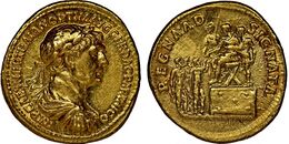The gains of Trajan were short-lived. Revolts occurred in all the conquered territories, with the Babylonians and Jews pushing the Romans out of Mesopotamia, and the Armenians under Sanatruk causing the Romans problems.[10] After Trajan's death in 117, the Parthians removed Parthamaspates from the throne and reinstated Osroes I.[6] Trajan's successor, Hadrian (ح. 117–138) renounced the remnants of Trajan's conquests in the east, and acknowledged the Treaty of Rhandeia, with the Parthian prince Vologases becoming the new king of Armenia.[11] The weakened state of the western part of the Parthian Empire gave Vologases III (whose eastern domains were untouched) the opportunity to regain lost territory seized by Osroes I.[3] In 129, Vologases III finally managed to remove Osroes I from power.[1][12]