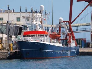 سفينة الأبحاث "أودين فايندر"، راسية في ميناء ليماسول في طريقها إلى ميناء پيريه اليوناني، في 25 يناير 2016، لتحديد مسار الكابل الكهربائي الأوراسي. وقد وصلت إلى ميناء پيريه اليوناني في 29 يناير.