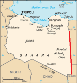 تُُحدد معظم الحدود بين مصر وليبيا عن طريق خط الطول، كذلك تُحدد معظم الحدود بين ليبيا والسودان.[1]