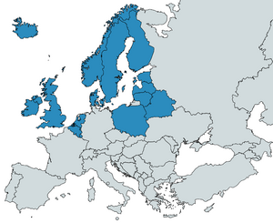 البلدان الأوروپية التي تقع بالكامل في خط العرض 49° شمالاً.