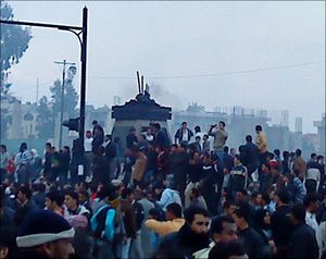 - 17 فبراير 2011 انتفاض المئات في حي الحريقة بدمشق احتجاجا على إهانة رجال أمن لابني مالك أحد المحال في الحريقة بدمشق.