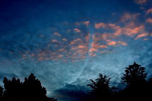 Decaying contrail spread by upper winds until it looks like cirrus cloud, Manchester, England, 13 May 2010