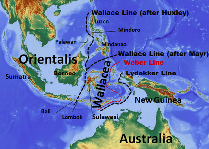 Alternatively, "Weber's line" runs through this transitional area (to the east of center), at the tipping point between Asian species against those with Australian origins.[10]