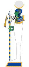 وأحياناً ما يصور برأس الصقر كرب سماوى، ويميز عن المعبودين "رع" و"حـور" بقرص القمر والهلال.
