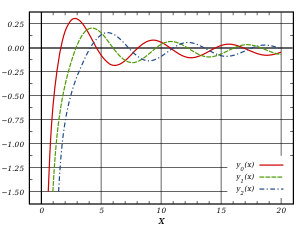 هي دالة غاما ، تعميم دالة المضروب للقيم الغير صحيحة. يبدو رسم دوال بسل شبيها بدوال الجيب وجيب التمام المتضائلة طرديا مع