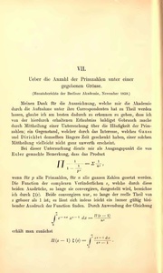 - Riemann, Bernhard (1859). "Über die Anzahl der Primzahlen unter einer gegebenen Grösse". Monatsberichte der Berliner Akademie.. In Gesammelte Werke, Teubner, Leipzig (1892), Reprinted by Dover, New York (1953).