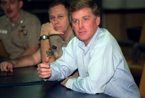 As Bush lagged in the polls in the weeks preceding the August 1992 Republican National Convention, some Republican strategists (led by Secretary of State James Baker) viewed Quayle as a liability to the ticket and pushed for his replacement.[39] Quayle ultimately survived the challenge and secured renomination.[40]
