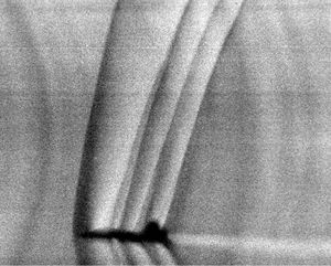 موجة الصدمة تبدأ بالظهور عندما يبدأ الهواء بالتسارع حول طرف المدخل بداية من السرعة 0.85 ماك.