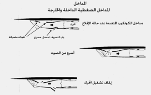 1- الاستفادة من اندماج الموجة الصدمية المخروطية والعادية لتحسين مستوى الضغط بالسرعات الفوق صوتية العالية. الموجة المخروطية تستخدم لتقليل رقم الماك للسرعة الفوق صوتية عند الدخول للموجة الصدمية العادية, وهكذا يقل الناتج العام لمضار الصدمة.