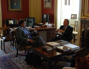 When Majority Leader Harry Reid faced a difficult reelection fight in 2010, some pundits predicted a possibly heated fight to succeed him between Durbin and Senator Chuck Schumer, who is well known for his fund-raising prowess.[23] Reid's reelection rendered such speculation moot. Upon Reid's retirement announcement in 2015, Durbin, Reid, and Schumer were aligned in elevating Schumer to party leader and Durbin to retain the Whip position.[24]