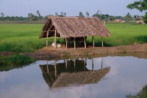 Approximately two-thirds of the Bangladesh people work in agriculture and grow crops on the fertile floodplains of the delta. The major crops that are grown in the Ganges Delta are jute, tea, and rice.[4] Fishing is also an important activity in the delta region, with fish being a major source of food for many of the people in the area.[7]