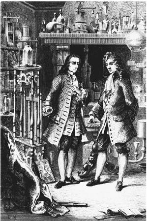 ماكينة رفع الماء مدارة بالبخار، من اختراع پاپان في 1707، اعادة تركيب، من Nouvelle manière d'élever l'eau par la force du feu. Musée des Arts et Métiers.