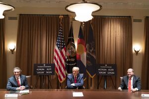During both terms, North Dakota maintained a robust fossil fuel industry. Burgum set a goal for North Dakota to become carbon-neutral by 2030, which he planned to accomplish through carbon capture and storage technology to capture and sequester carbon dioxide in the state's geological formations and by using carbon dioxide for enhanced oil recovery and via agricultural practices that sequester carbon in soil.[41] The 2021 announcement of the goal sparked $25 billion in private sector investment, according to remarks he made at the annual meeting of the North Dakota petroleum council.[42] Burgum was reelected in 2020 with over 65% of the vote.[43][44]