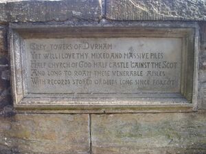 Sir Walter Scott was so inspired by the view of the cathedral from South Street[59] that he wrote "Harold the Dauntless", a poem about Saxons and Vikings set in County Durham and published on 30 January 1817. The following lines from the poem are carved into a stone tablet on Prebends Bridge: