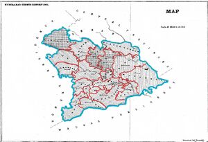 In 1867, the State was divided into five divisions and seventeen districts, and subedars (governors) were appointed for the five Divisions and talukdars and tehsildars for the districts. The judicial, public works, medical, educational, municipal, and police departments were re-organised.[21] In 1868, sadr-i-mahrams (Assistant Ministers) were appointed for the Judicial, Revenue, Police, and Miscellaneous Departments.[22]
