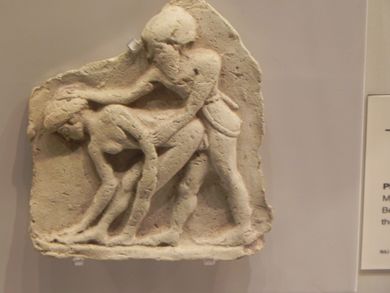 In Greece, the myth of Adonis was associated with the festival of the Adonia, which was celebrated by Greek women every year in midsummer.[8][39] The festival, which was evidently already celebrated in Lesbos by Sappho's time,[8] seems to have first become popular in Athens in the mid-fifth century BC.[8] At the start of the festival, the women would plant a "garden of Adonis",[8] a small garden planted inside a small basket or a shallow piece of broken pottery containing a variety of quick-growing plants, such as lettuce and fennel, or even quick-sprouting grains such as wheat and barley.[8][9] The women would then climb ladders to the roofs of their houses,[8] where they would place the gardens out under the heat of the summer sun.[8] The plants would sprout in the sunlight,[8] but wither quickly in the heat.[8] Then the women would mourn and lament loudly over the death of Adonis,[8] tearing their clothes and beating their breasts in a public display of grief.[8] The third century BC poet Euphorion of Chalcis remarked in his Hyacinth that "Only Cocytus washed the wounds of Adonis".[40]