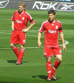 Kuyt (left) with ex-teammate Xabi Alonso at Liverpool
