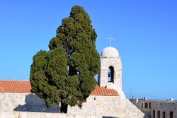 قبّة الجرس هي المعلَم الخارجيّ الأكثر روعة للدير. فهي مبنيّة على الطراز البروفنسيّ الغوطيّ، وهي الوحيدة في الشرق الأوسط التي تعود إلى العصر الوسيط. ترتفع هذه القبّة فوق القوس النصف دائريّ، شكلها مربّع وكلّ حافة من حوافّها مزيّنة بفتحة مقوّسة جميلة.