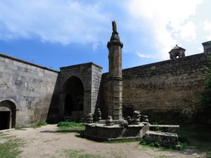 هو أحد درر الهندسة المعمارية في القرون الوسطى، صمم في بداية القرن العاشر، يبلغ طوله ثمانية أمتار و أستخدم في تصميمه تقنية التمحور لتمكنه من الميلان عند حدوث زلازل وأيضا لإخافة الأعداء عند مهاجمتهم للدير.