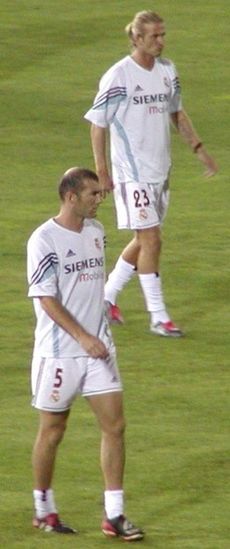 Beckham (top) and Zinedine Zidane at Real Madrid in August 2003