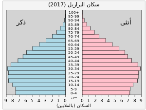 انخفضت نسبة النمو السكاني السنوي بالبرازيل من نحو 3% في مطلع ستينيات القرن العشرين الميلادي إلى ما يقرب من 2% في مستهل التسعينيات. وقد تضاعف عدد سكان الدولة أربع مرات منذ عام 1940م. ووصلت نسبة عدد السكان الذين تبلغ أعمارهم أقل من 15 عامًا بالبرازيل إلى حوالي 35%.