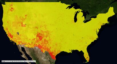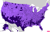 في أراضي الولايات المتحدة، تشمل المراكز السكانية منطقة سان خوان مترو في پورتو ريكو،[35] و سايپان في جزر ماريانا الشمالية،[36] وجزيرة توتويلا في ساموا الأمريكية.[37]