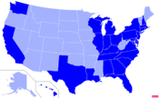 الرسمية | لا توجد لغة رسمية على المستوى الوطني. الإنگليزية هي اللغة الرسمية في 32 من 50 ولاية (و5 مناطق أمريكية). الهوائية هي اللغة الرسمية في هاواي، 20 لغة أصلية رسمية في ألاسكا، والسيوكس هي اللغة الرسوية في داكوتا الجنوبية.[5] Samoan is an official language in American Samoa,[6] التشامورو هي اللغة الرسمية في گوام،[7] التشامورو والكاروليننية هي اللغتين الرسميتين في جزر ماريانا الشمالية،[8] والإسپانية هي اللغة الرسمية في پورتو ريكو.[9] |