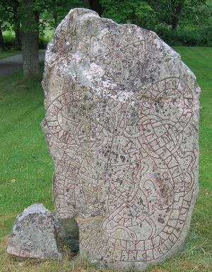 حجر الرون U 241 في Lingsberg, اوپلاند، السويد، أقامه أحفاد أولفريكر، حوالي سنة 1050 في تخليداً لاستلامه الدين‌گلد مرتين في إنگلترة.