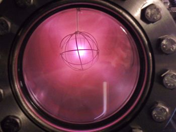 ديوتريوم مؤين في مفاعل IEC fusion ينبعث منه وهجاً أحمراً وردياً مميزاً.