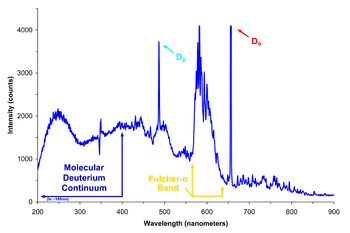 طيف الانبعاث لمصباح قوس الديوتريوم فوق البنفسجي.