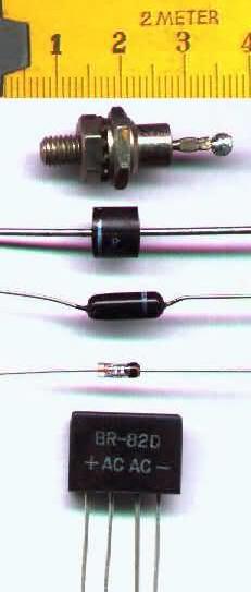 Figure 2: Various semiconductor diodes. Bottom: A bridge rectifier