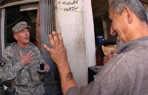 الجنرال ديڤيد پترايوس (و. 7 نوفمبر 1952)، عسكري أمريكي وشغل منصب القائد العام للقوات الأمريكية في العراق. وقد عين في هذا المنصب بناء على قرار الكونجرس الأمريكي في 26 يناير 2007، وتسلم مهام منصبه في 10 فبراير 2007، خلفا للجنرال جورج كايسي.[1][2] في 23 إبريل 2008، أعلن سكرتير وزارة الدفاع الأمريكية روبرت جيتس عن تعيين بترايوس كقائد عام للقوات المركزية الأمريكية.[3] والذي تم تأكيده عن طريق الكونجرس في 10 يوليو 2008.[4] وفي 4 يوليو 2010، تولى منصب قائد القوة الدولية للمساعدة الأمنية (ايساف)، وقائد القوات الأمريكية في أفغانستان (USFOR-A). وتولى منصب مدير وكالة المخابرات المركزية من 6 سبتمبر 2011،[5] حتى استقالته في 9 نوفمبر 2012.[6]