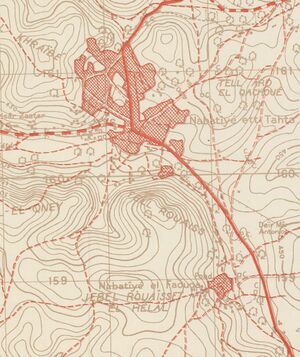 تل الرويس وجبل الرويسات في خريطة من عام 1943 لكل من النبطية والنبطية الفوقا.