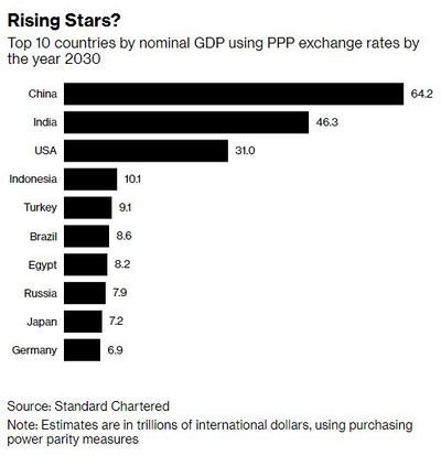 - Enda Curran (2019-01-08). "These Could Be the World's Biggest Economies by 2030". بلومبرگ.
