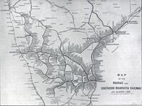 The first railway line in South India was laid between Madras and Arcot, which was opened for traffic on 1 July 1856.[185] The line was constructed by the Madras Railway Company formed in 1845.[185] The railway station at Royapuram, the first in South India, was built in 1853 and served as the headquarters of the Madras Railway Company.[185] The Great Southern of India Railway Company was set up in the United Kingdom in 1853.[185] and had its headquarters at Trichinopoly where it constructed its first railway line between Trichinopoly and Negapatam in 1859.[185] The Madras Railway Company operated standard or broad-gauge railway lines while the Great South Indian Railway Company operated metre-gauge railway lines.[186] In 1874, The Great Southern Indian Railway Company merged with the Carnatic Railway Company (established in 1864) and was renamed the Southern Indian Railway Company.[187] The Southern Indian Railway Company merged with the Pondicherry Railway Company in 1891 while the Madras Railway Company merged with the Southern Mahratta Railway Company in 1908 to form the Madras and South Mahratta Railway Company.[185] A new terminus was built at Egmore for the Madras and South Mahratta Railway Company.[185] In 1927, the South Indian Railway Company shifted its headquarters from Madurai to Chennai Central. The company operated a suburban electric train service for Madras city from May 1931 onwards.[187] In April 1944, the Madras and South Mahratta Railway Company was taken over by the Madras Government. In 1947, there were 4،961 ميل (7،984 km) of railway in the presidency, in addition to 136 ميل (219 km) of district board lines.[147] Madras was well-connected with other Indian cities like Bombay and Calcutta and with Ceylon.[188] The 6،776-قدم (2،065 m) Pamban railway bridge connecting Mandapam on the Indian mainland with Pamban island was opened for traffic in 1914.[189] The Nilgiri Mountain Railway was inaugurated between Mettupalayam and Ootacamund in 1899.