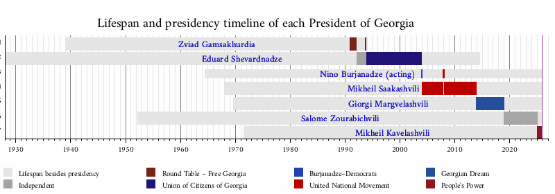 - ميخئيل سآكاشڤيلي (25 يناير 2004 - 25 نوفمبر 2007)