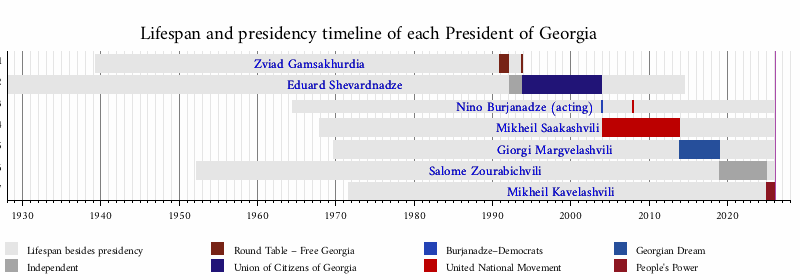 - Zviad Konstantines dze Gamsakhurdia (14 نوفمبر 1990 - 14 ابريل 1991)