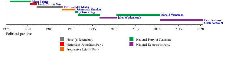 25 November 1975 | 13 August 1980[أ] | 4 years, 262 days | National Party of Suriname |
