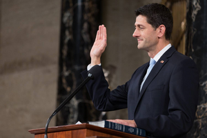 John Boehner was elected speaker when the 112th Congress convened on January 5, 2011, and was subsequently re-elected twice, at the start of the 113th and 114th Congresses. On both of those occasions his remaining in office was threatened by the defection of several members from his own party who chose not to vote for him.[19][20] Boehner's tenure as speaker, which ended when he resigned from Congress in October 2015, was marked by multiple battles with the conservatives in his own party related to "Obamacare", appropriations, among other political issues.[21] This intra-party discord continued under Boehner's successor, Paul Ryan.