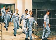 صباح يوم 17/6/1985 ـ الرواد في طريقهم إلى مركبة المكوك