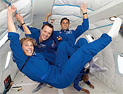 Mission Specialist Educators Lindenberger, Arnold, and Acaba during a parabolic flight.