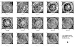 GPR depth slices showing a crypt in a historic cemetery. These planview maps show subsurface structures at different depths. Sixty lines of data – individually representing vertical profiles – were collected and assembled as a 3-dimensional data array that can be horizontally "sliced" at different depths.)