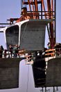 Once the bridge span between adjacent piers is completed, the winches on the trolleys are used to lift the gantry girders and "launch" them ahead to the next span. The process of lifting and placing bridge segments (or girders) followed by launching the gantry girders ahead is repeated until the bridge is complete.[4][1]