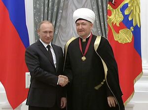 - ^ Office, Presidential Press and Information (May 22, 2015). "Русский: Председатель Совета муфтиев России Равиль Гайнутдинов и Владимир Путин на церемонии вручения Государственных наград и званий в Кремле 21 мая 2015 года" – via Wikimedia Commons.