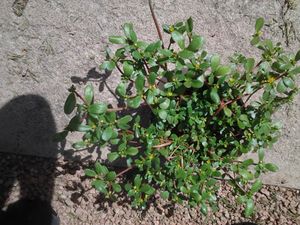 It has smooth, reddish, mostly prostrate stems and alternate leaves clustered at stem joints and ends. The yellow flowers have five regular parts and are up to 6 ميليمتر (0.24 in) wide. Depending upon rainfall, the flowers appear at any time during the year. The flowers open singly at the center of the leaf cluster for only a few hours on sunny mornings. Seeds are formed in a tiny pod, which opens when the seeds are mature. Purslane has a taproot with fibrous secondary roots and is able to tolerate poor compacted soils and drought.