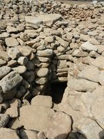 صخرتين كبيرتين للغاية من الجلمود في القسم الشرقي للمجمع (علامة محتملة للاعتدالين الربيعي والخريفي، ويُطلق عليهما اسم أحجار الاعتدال ). والجدران نصف القطرية.
